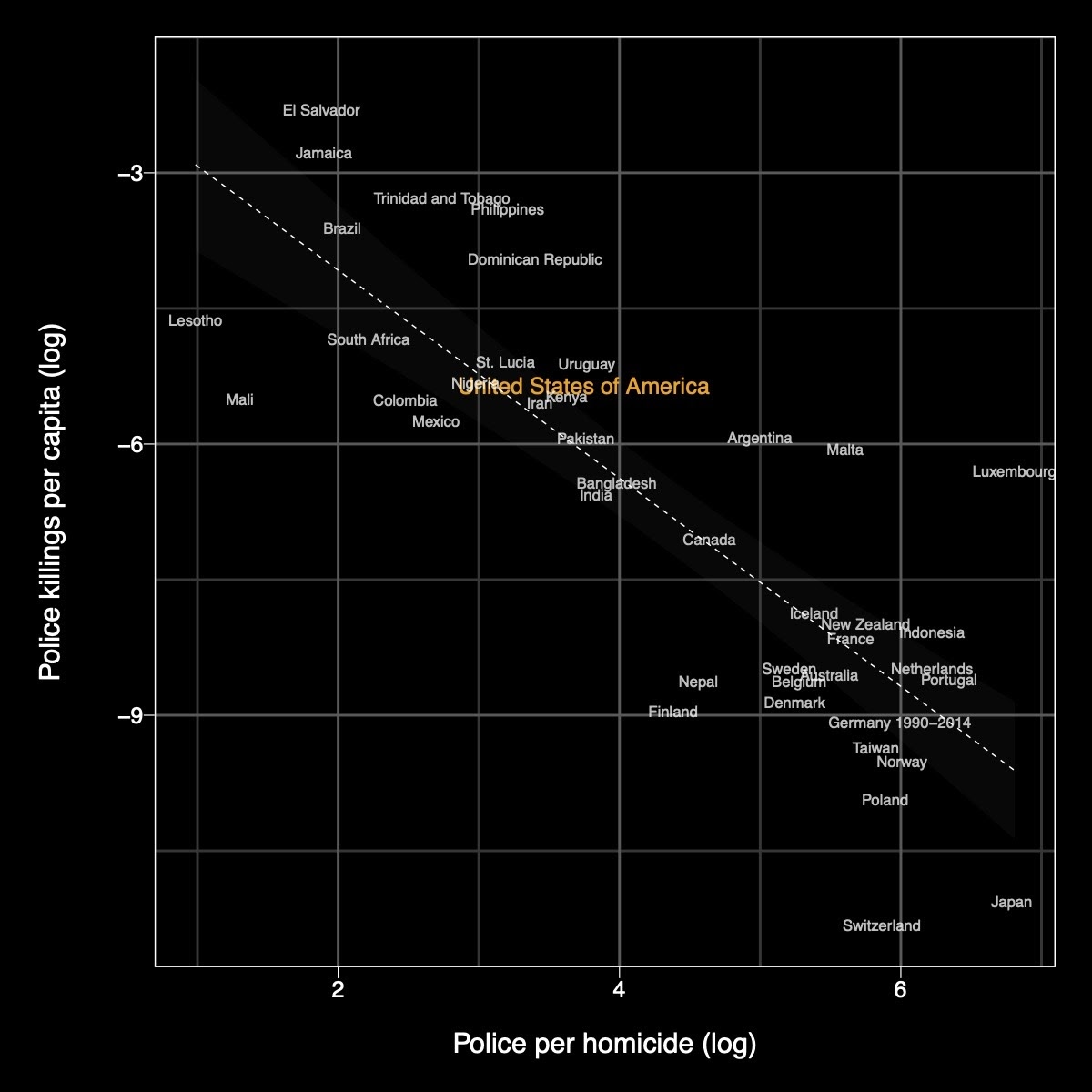 The United States is a much more violent country than most other rich nations. To address that we will need both a competent police force and generously funded public services to ensure public safety; right now no city has enough money for either. In some cases money may be badly spent: I’m certain there is fraud and waste in the NYPD budget. In other cases there isn’t enough money to pay officers more than minimum wage. This is true for many areas in and around St. Louis—one of the cities most afflicted with gun violence and most infamous for police violence. But in no case can any city afford Nordic style spending to achieve Nordic levels of public safety.